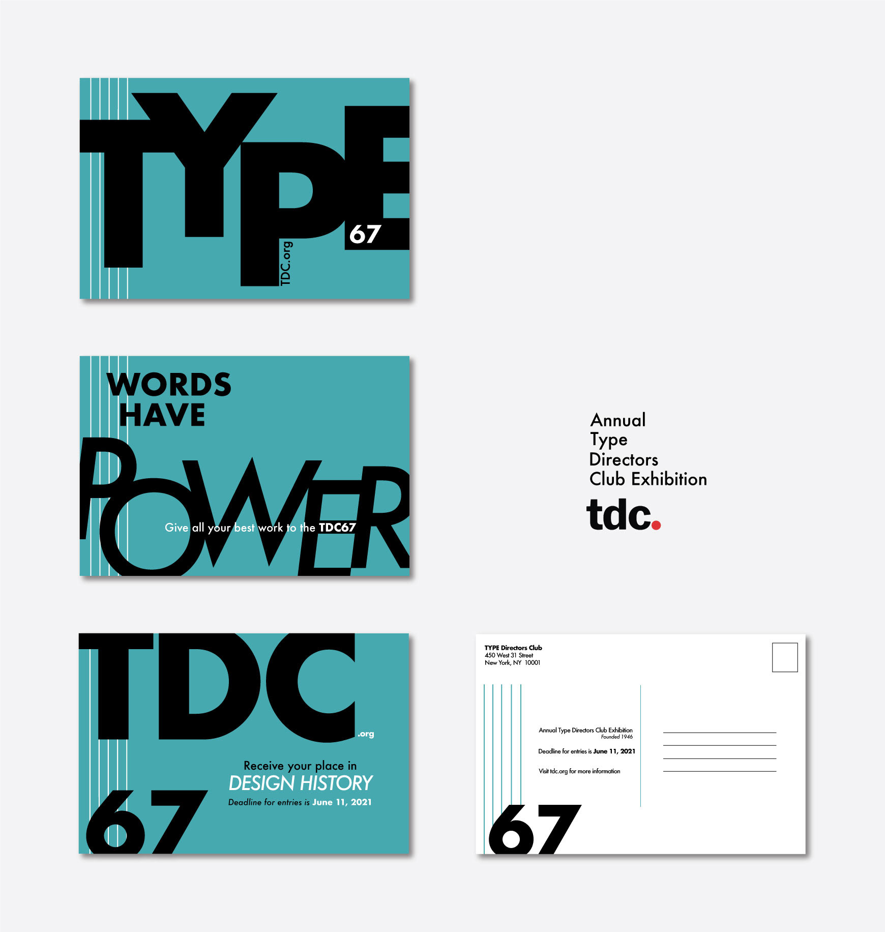 Designed a three postcard set for the Type Directors Club 67. Each postcard unique in design but cohesive throughout to create a series.